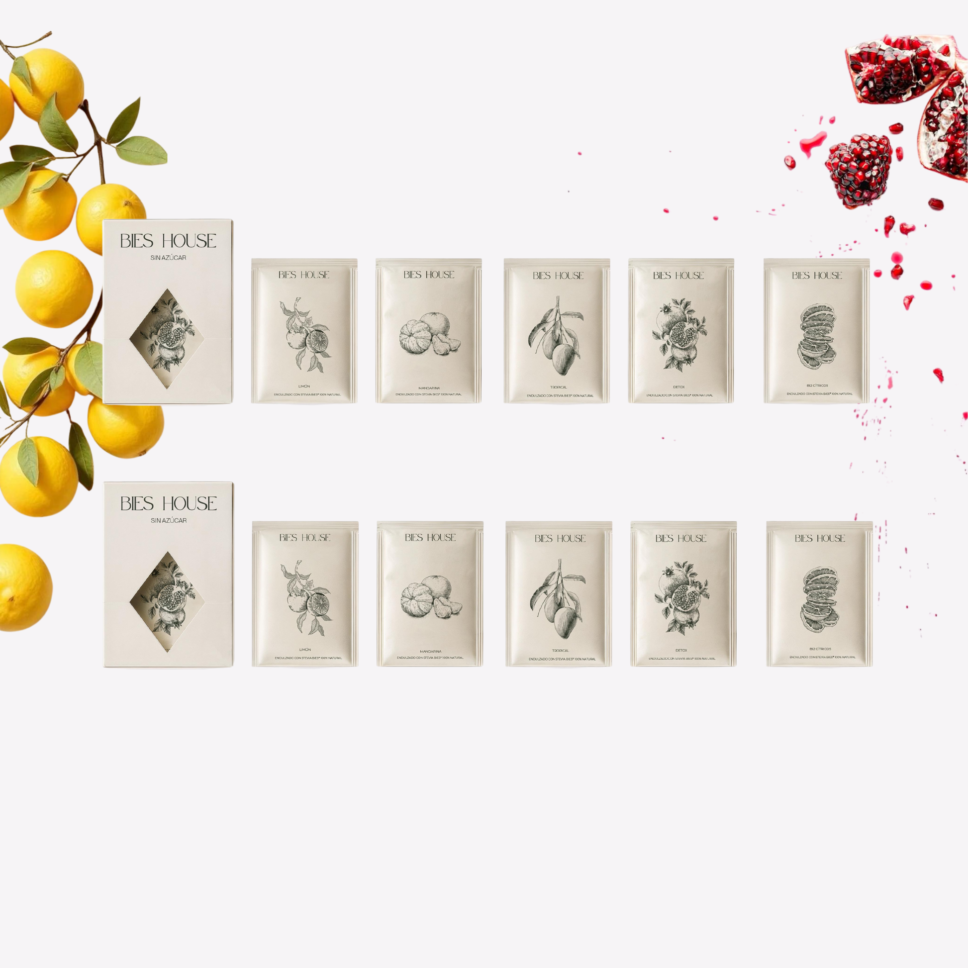- Mezcla saludable con cinco sabores (tropical, limón, mandarina, detox y cítricos B12).
